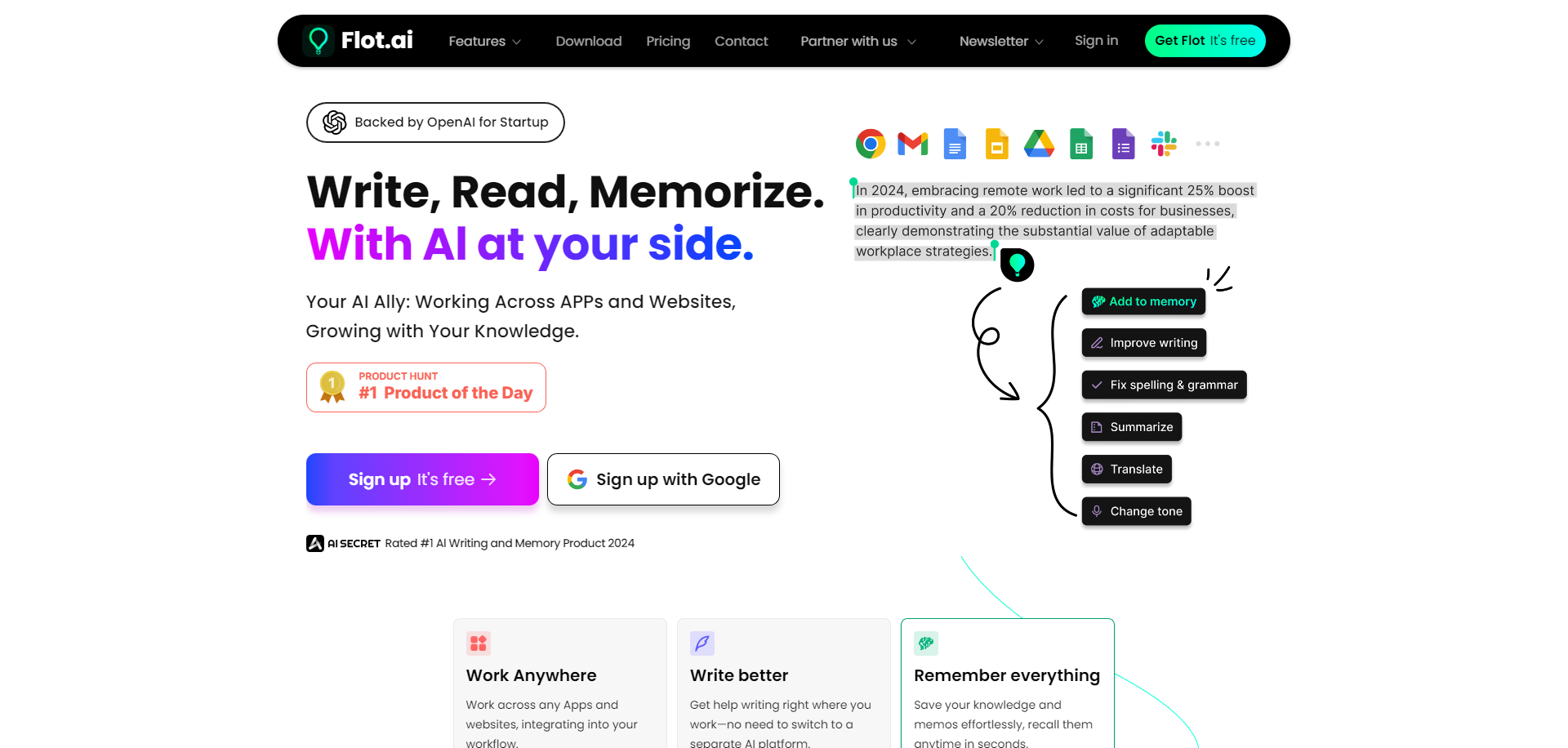 Flot.ai is an innovative productivity tool that combines the power of notes, tasks, and calendars into a single interface designed to streamline workflow. This platform uses artificial intelligence to automate and simplify task management, ensuring you stay organized without the need to juggle multiple apps or platforms. With Flot.ai, you can quickly jot down ideas, create to-do lists, schedule events, and seamlessly coordinate your day-to-day operations. The beauty of Flot.ai is its ability to create a bridge between all these components, allowing for a productive, orderly, and stress-free work environment.