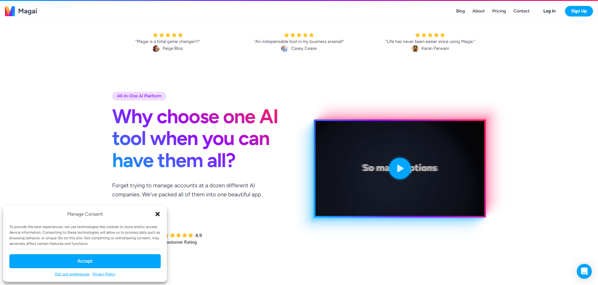Magai allows you to access many different LLM AI models which include AIs from ChatGPT, Meta, Google AI, Anthropic and more, all from the same website