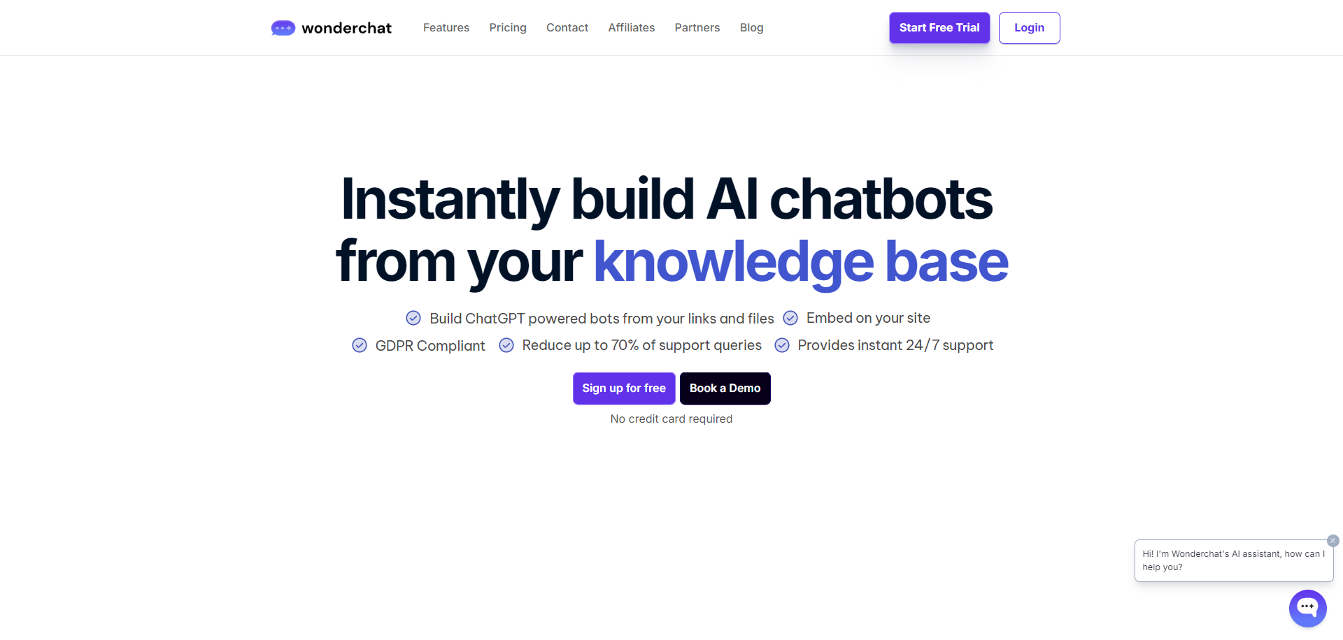 Wonderchat allows you to create AI chat bots easily. All you need to do is supply it a data source for context and watch as it generates tailored responses.